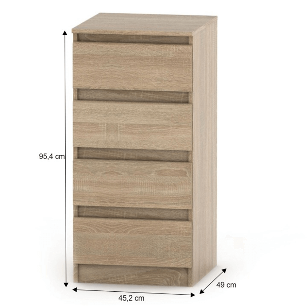 4 šuplíková komoda, dub sonoma, HANY NEW 009