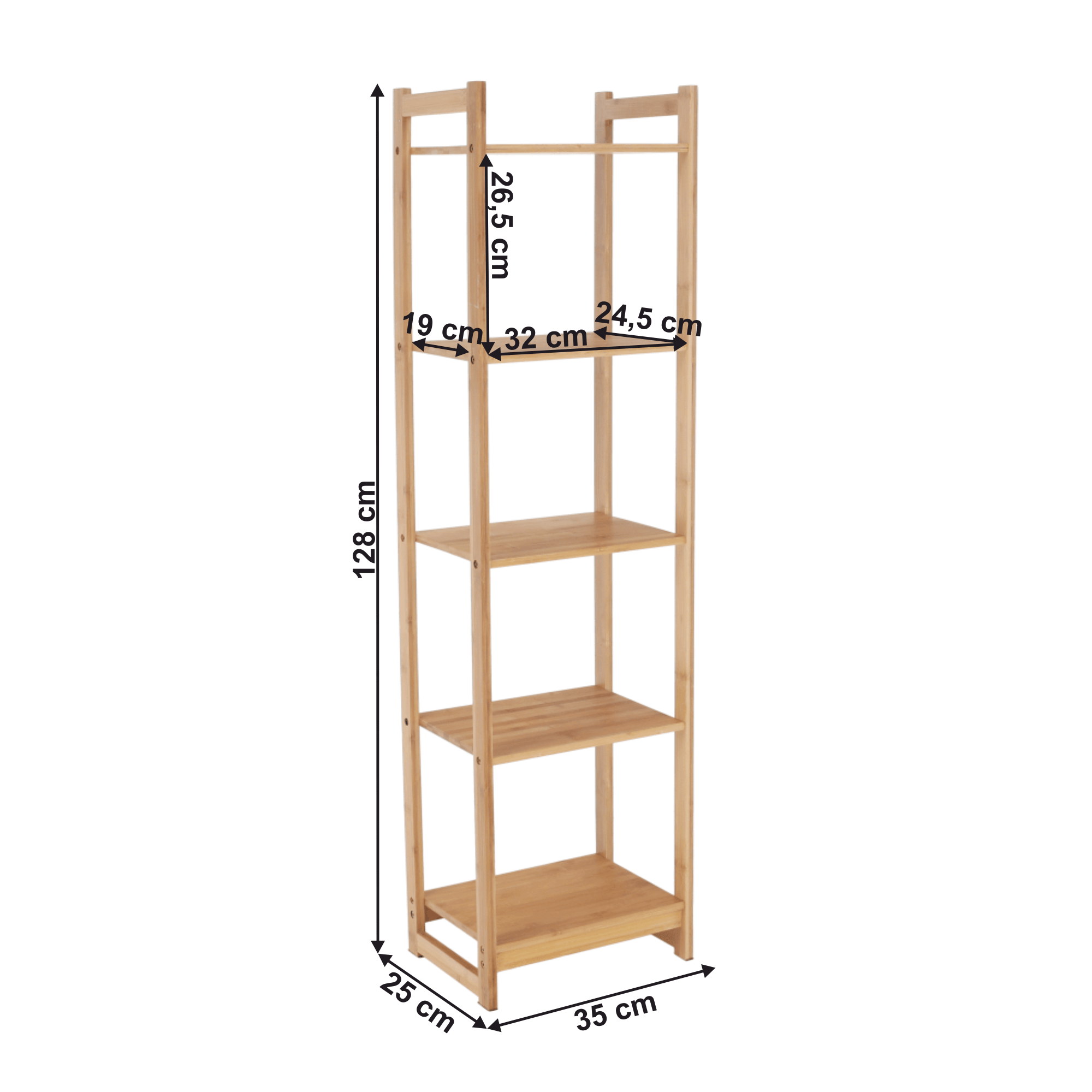 5-poličkový regál, prírodný bambus, IMPEROR TYP 3