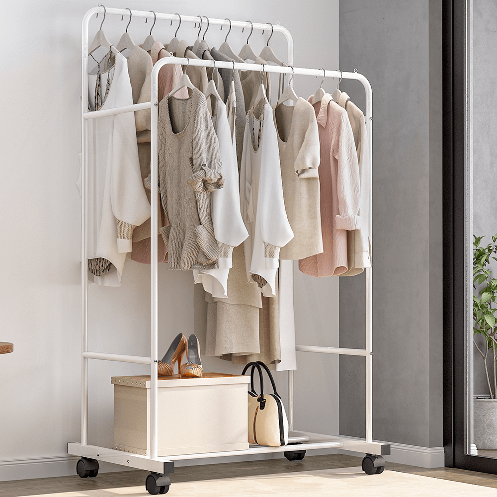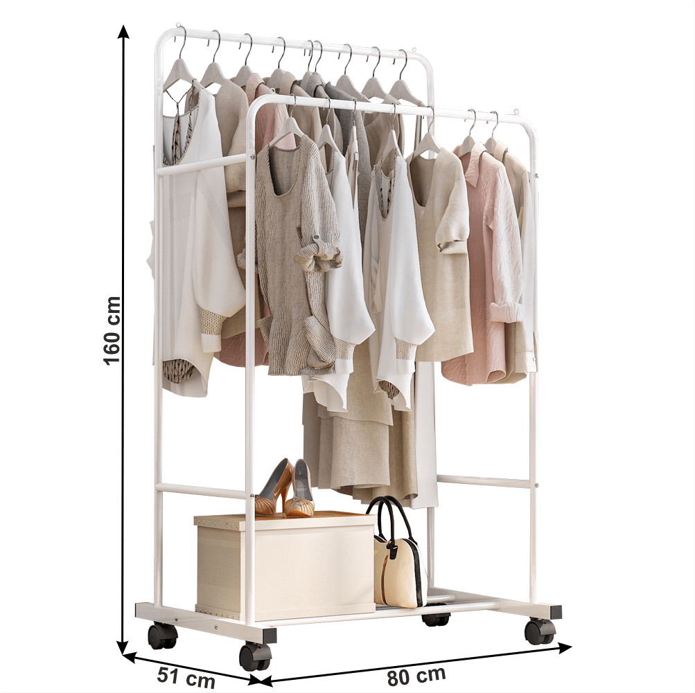 Dvojradový pojazdný vešiak, s policou, biela, ILIANA