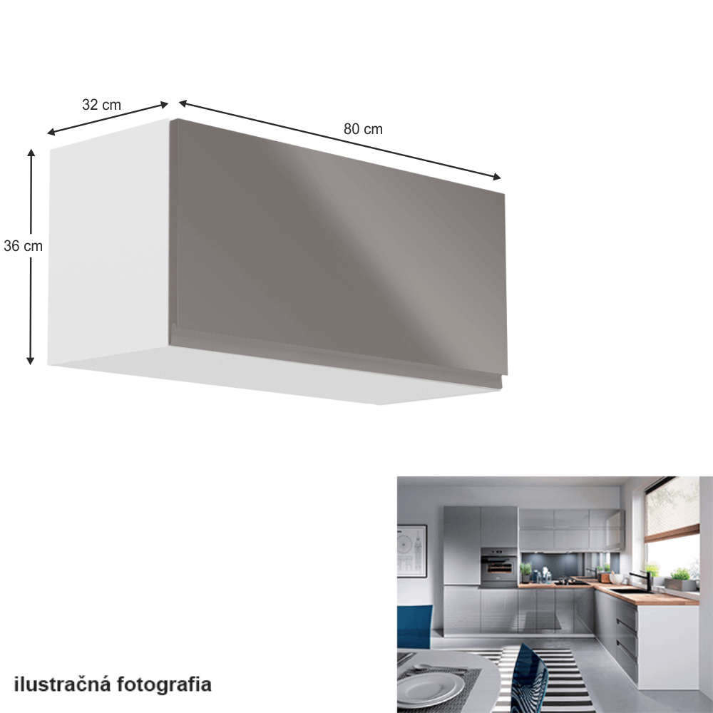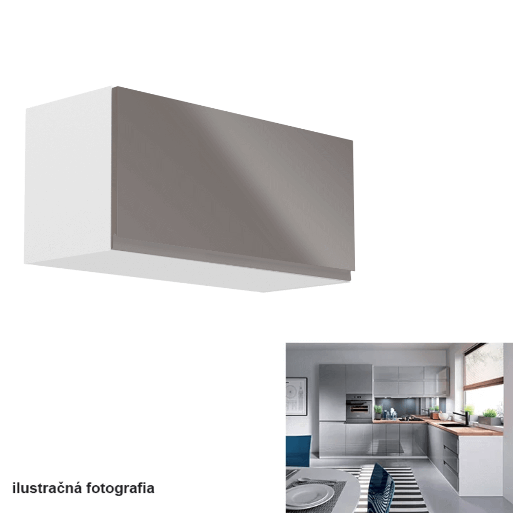 Horná skrinka, biela/sivý extra vysoký lesk, AURORA G80K