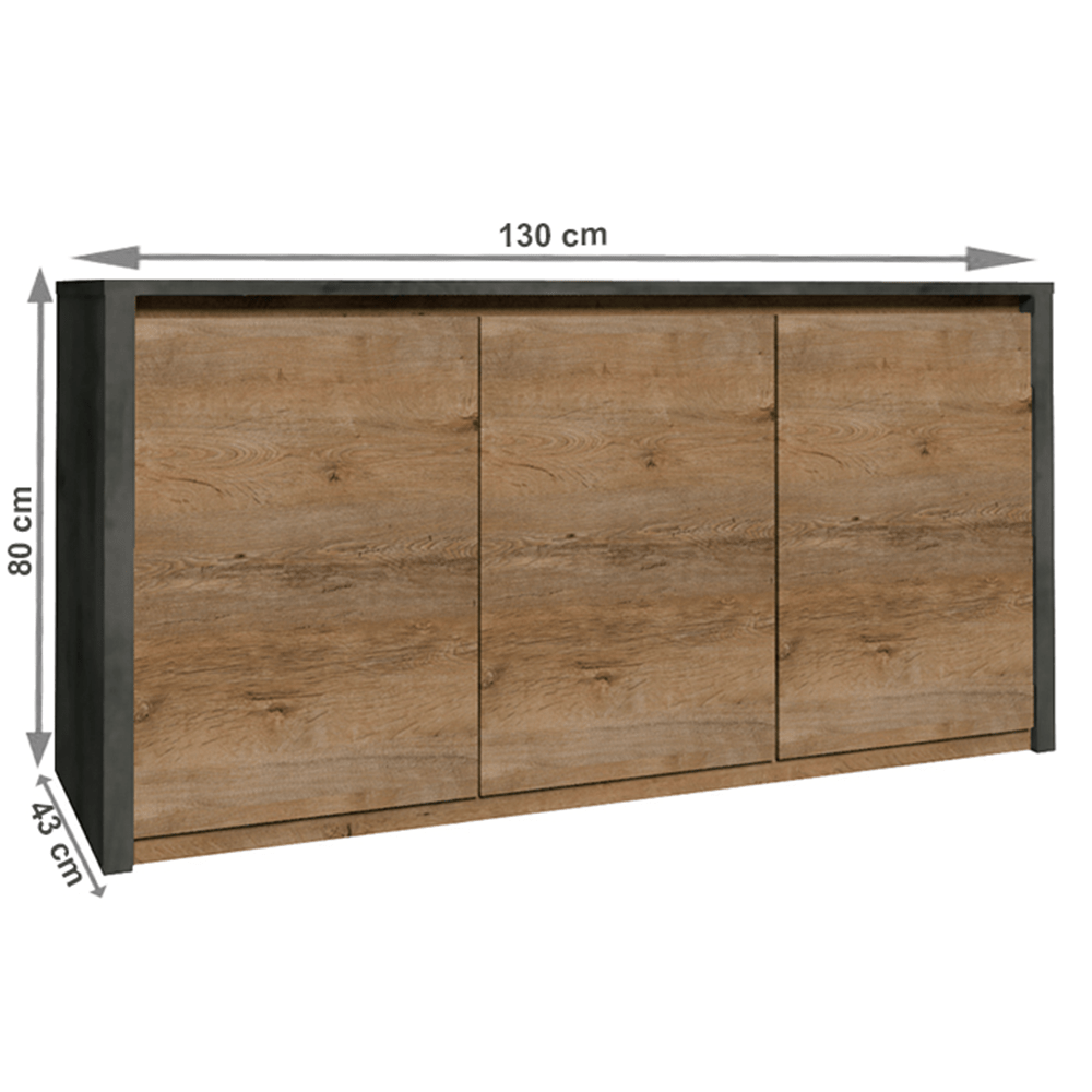 Komoda, dub lefkas tmavý/smooth sivý, MONTANA K3D