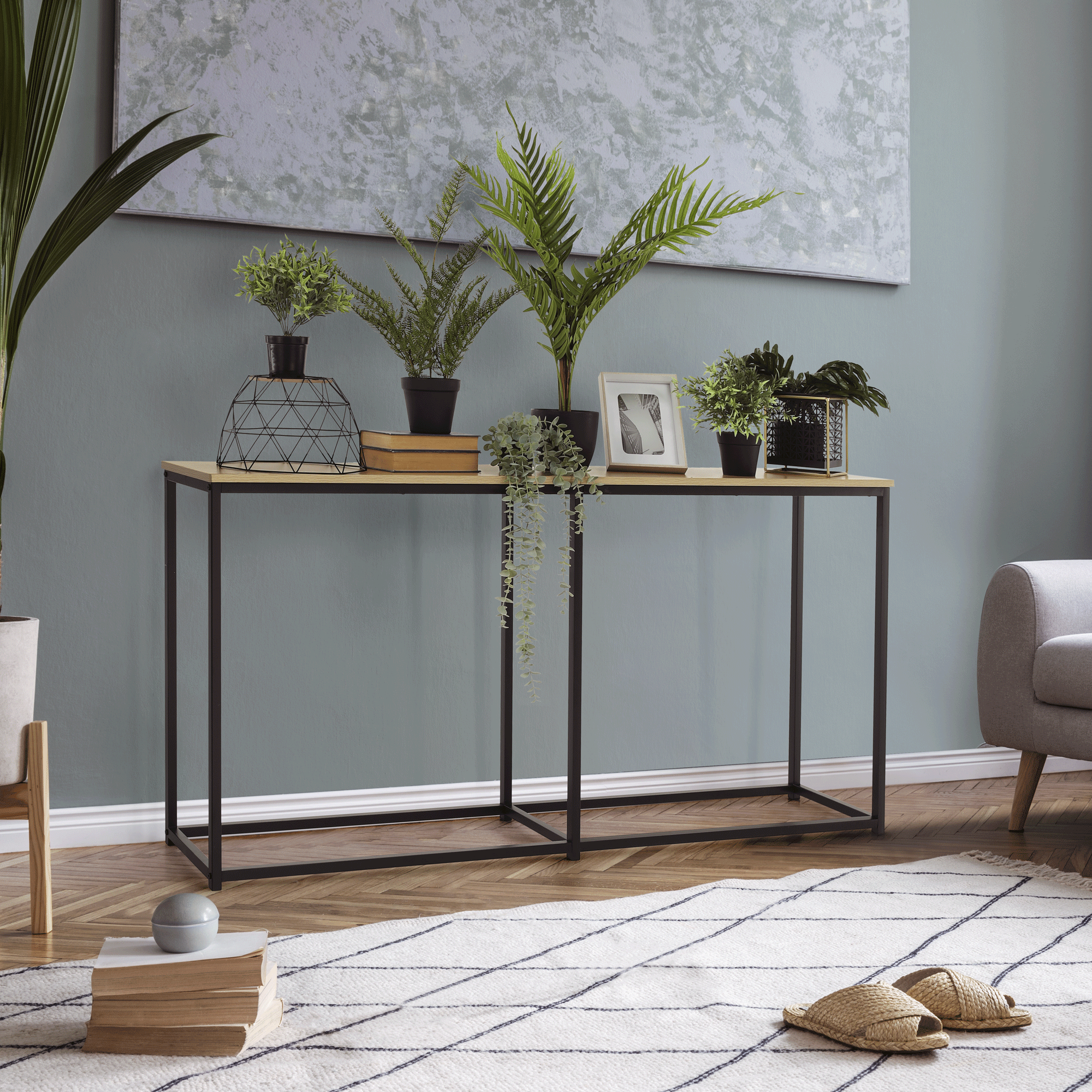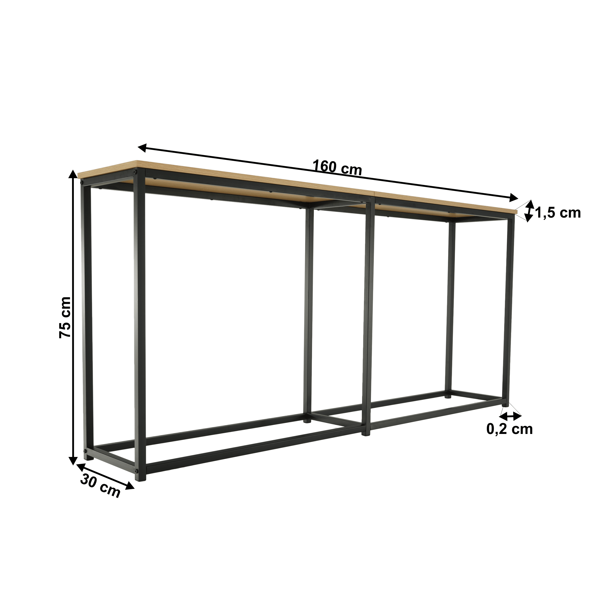 Konzolový stolík v industriálnom štýle, dub/čierna, BUSTA