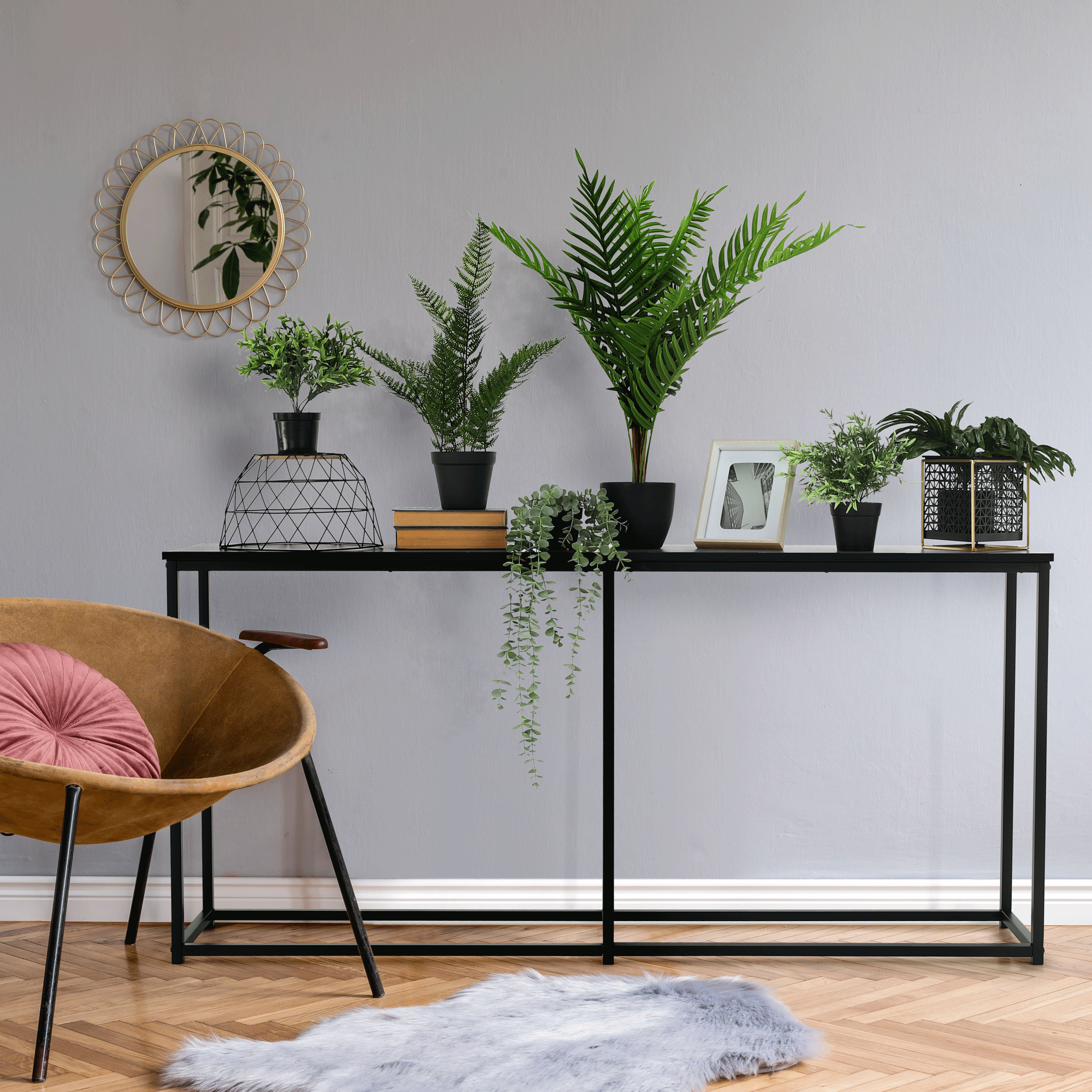Konzolový stolík v industriálnom štýle, tmavosivá grafit/čierna, BUSTA