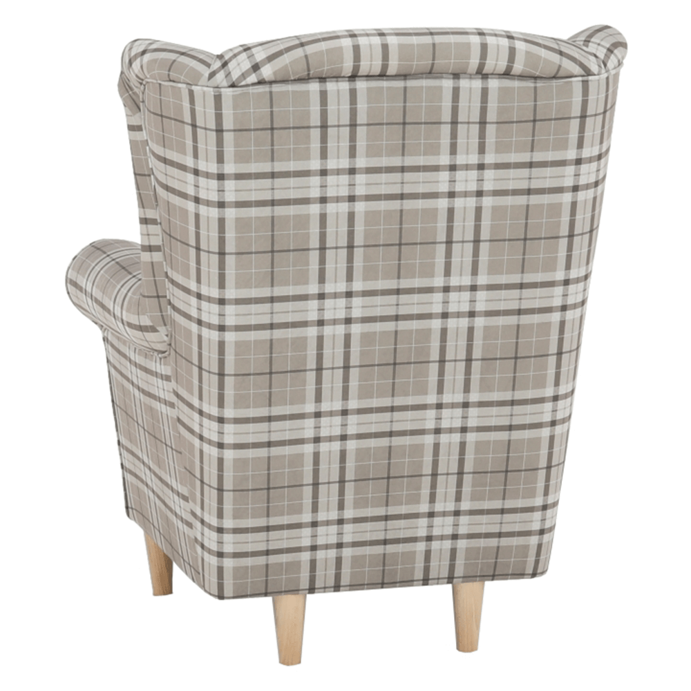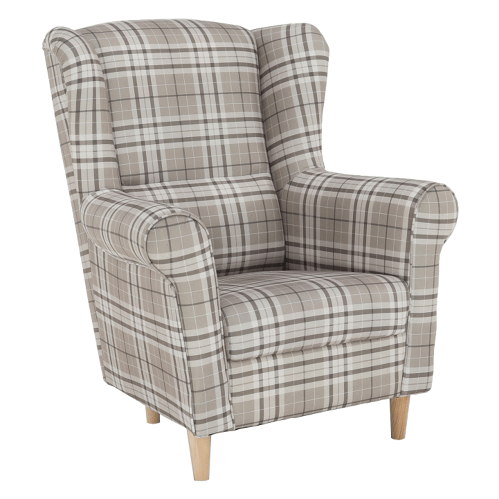 Kreslo-ušiak CHARLOT vo farebnom prevedení látky hnedé káro.