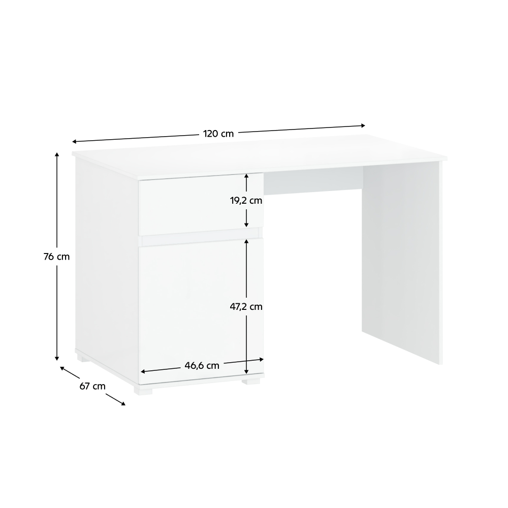 PC stôl 1D1S/120, biely lesk, LINDY