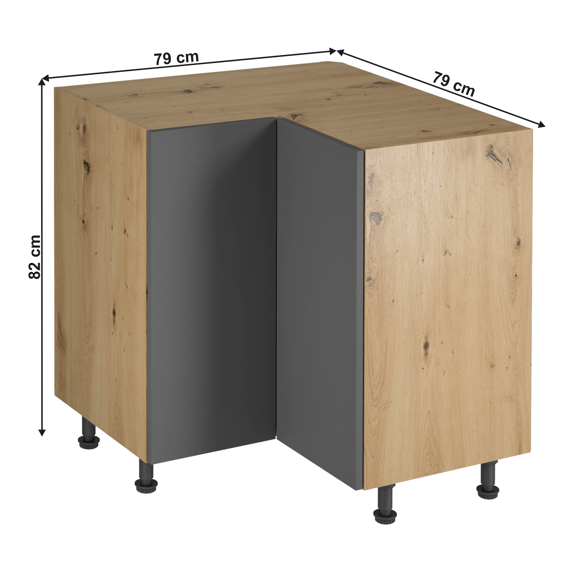 Rohová spodná skrinka, dub artisan/sivý mat, LANGEN D90N