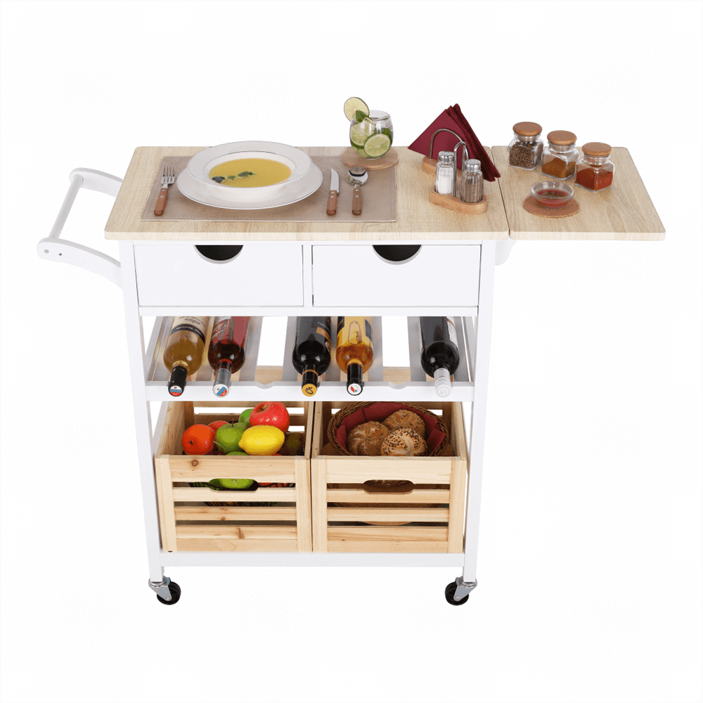 Servírovací vozík, biela/prírodná, PASSAT
