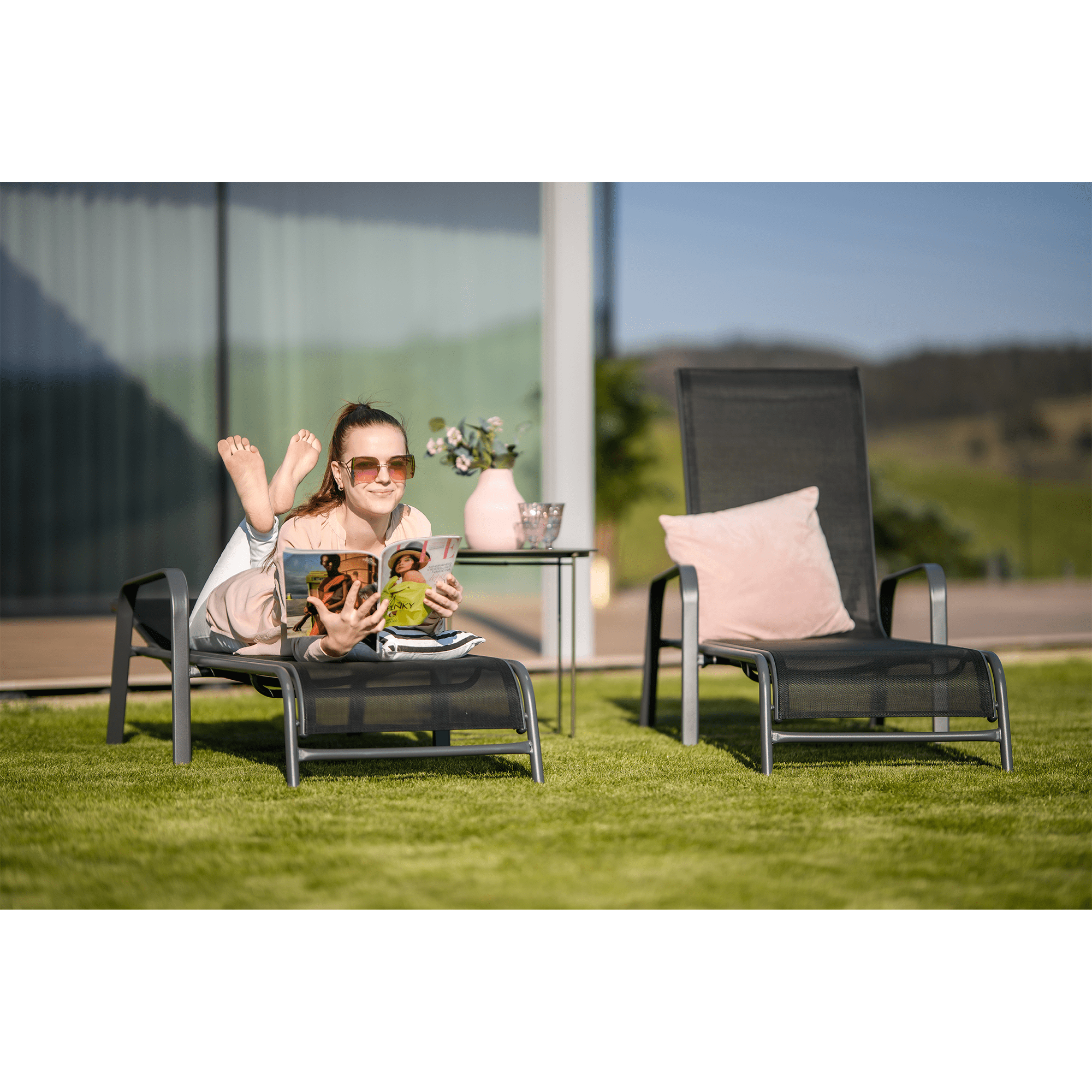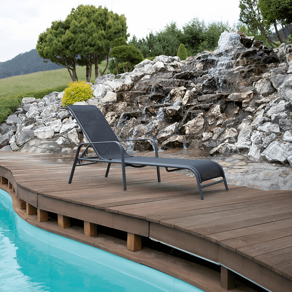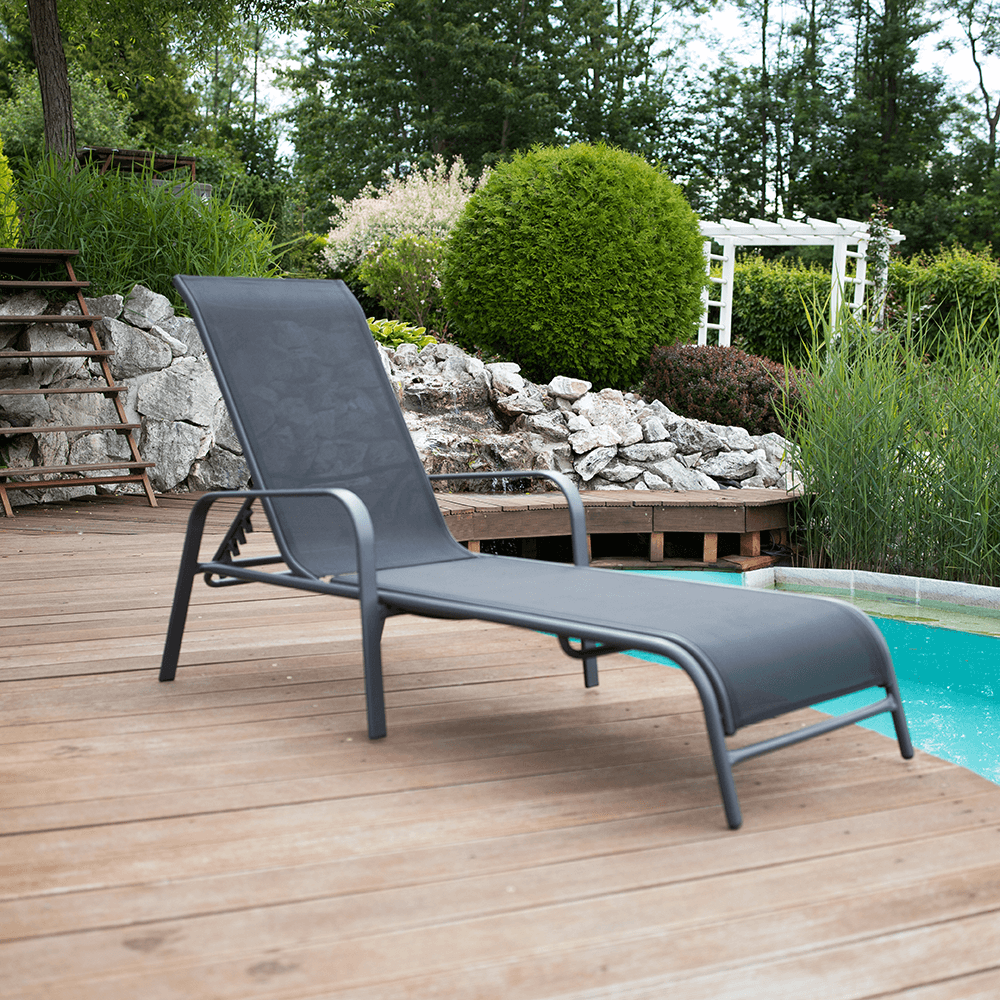 Stohovateľné polohovacie záhradné lehátko, čierna/sivá, ATREO