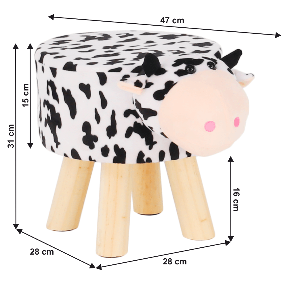 Taburet v tvare kravičky, látka Velvet biela/čierna/prírodná, MOLLY