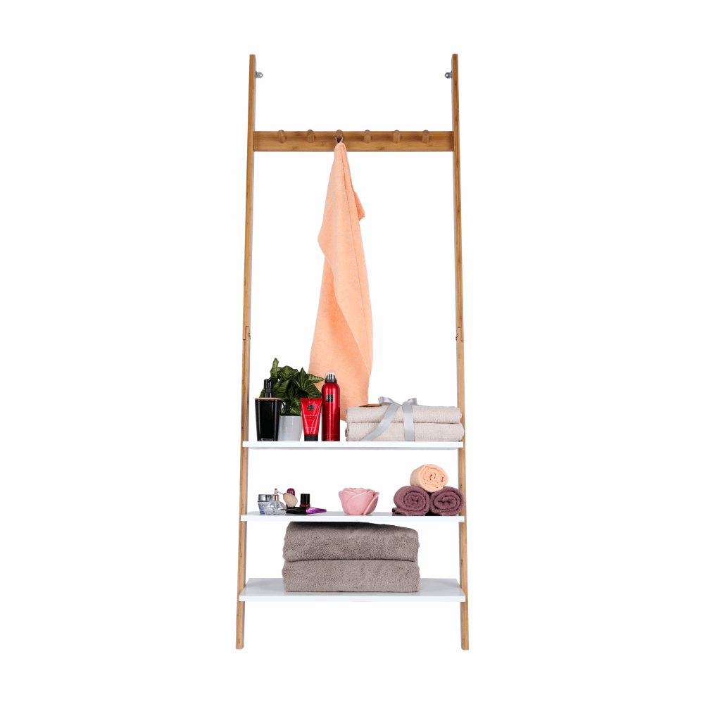 Vešiak s policami, biela/bambus, MARIKE TYP 2