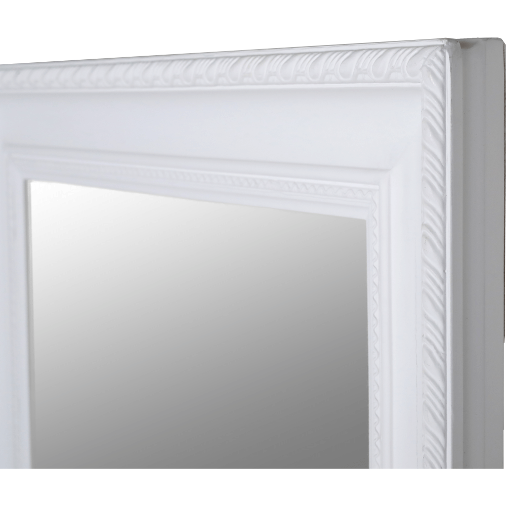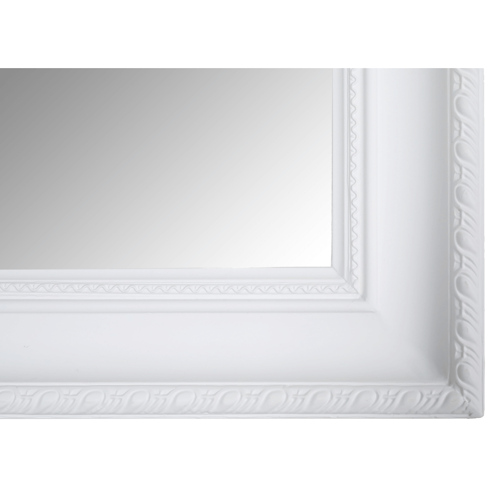 Zrkadlo MALKIA TYP 2 s dreveným rámom v bielej farbe.